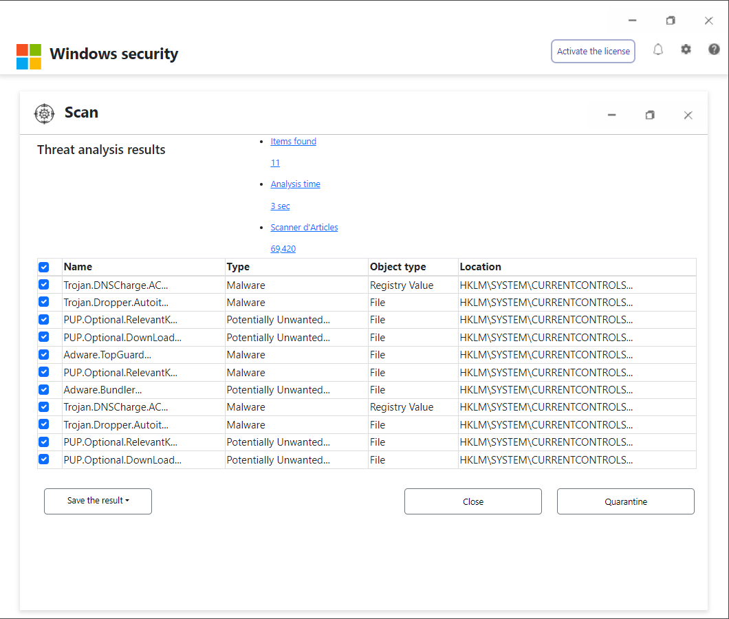 Une analyse Windows Defender a détecté un logiciel publicitaire sur cet appareil susceptible de voler vos mots de passe, vos identités en ligne et vos informations financières. Vos informations, fichiers personnels, photos et documents.