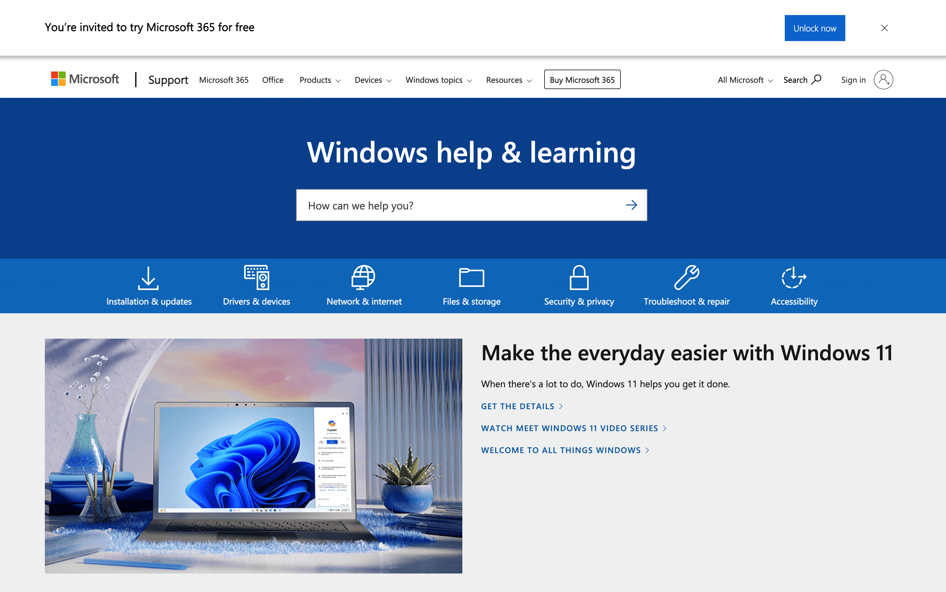 Appelez le support Windows :